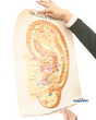 El póster auricular esta diseñado a todo color y contiene la mayoría de los puntos auriculares chinos, además le da un aire profesional al consultorio y al médico le recuerda la localización exacta del punto a tratar y  el paciente  puede participar  en  su terapia con la visualización del esquema.